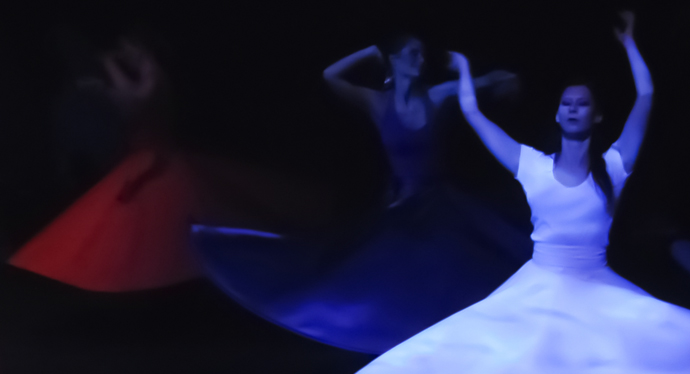 Der Tanz der Derwische wirbelt alles Beschwerende zu Boden und lässt das Herz leicht werden in der ruhenden Mitte des Kreises. Die bewegte Meditation führt über die Atmung und das Körperbewusstsein in eine innere Präsenz. Verse von MystikerInnen aus Ost und West bereichern das eigene Erleben. Der Drehtanz verankert den Schritt auf der Erde, während sich die Arme zum Himmel öffnen: Die Seele wird sich ihrer Heimat gewahr.